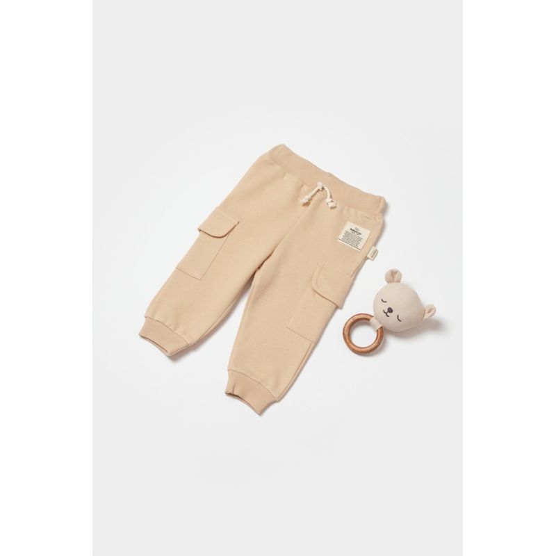 Fashion, accesorii si bijuteriiCopiiImbracaminte copiiPantaloni copiiPantaloni cu buzunare laterale, Two thread, 100%bumbac organic - Stone, BabyCosy (Marime: 6-9 luni)