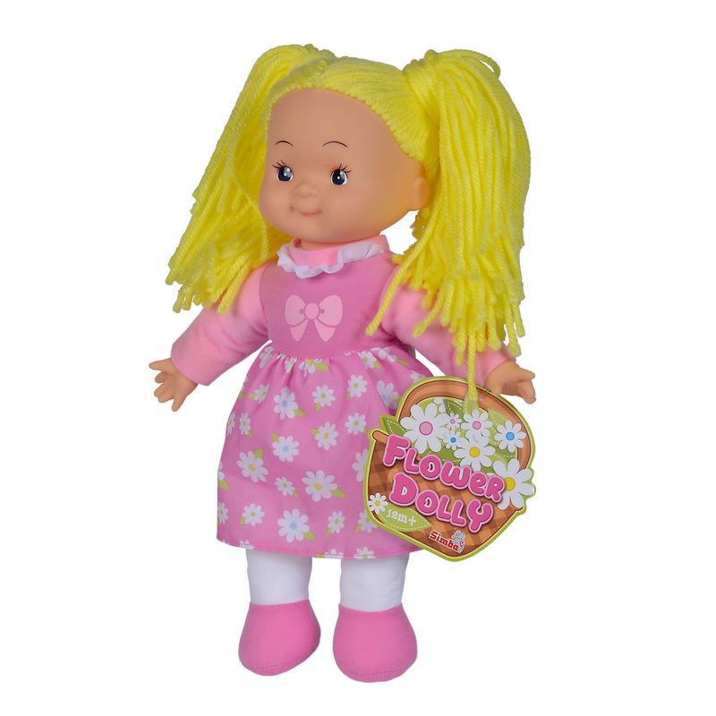 Papusa Flower Dolly din material textil 38 cm cu parul galben Papusa Flower Dolly din material textil 38 cm cu parul galben