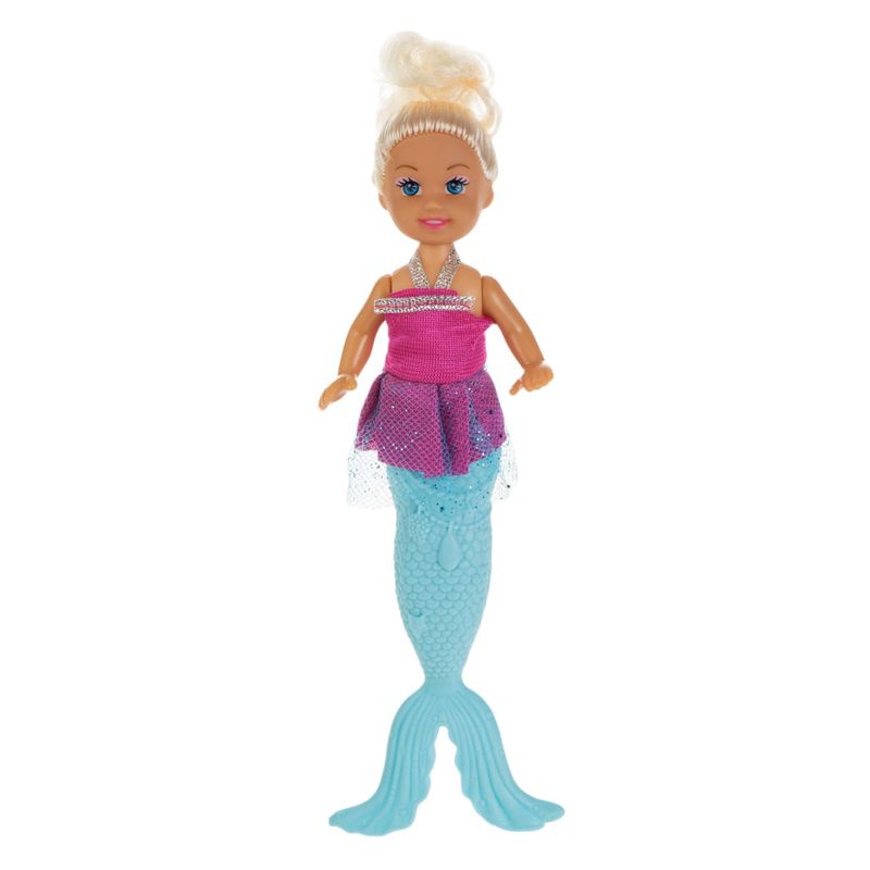 Papusa manechin, baby mermaid, cu coada detasabila, rochie fucsia, par blond, 21 cm Papusa manechin, baby mermaid, cu coada detasabila, rochie fucsia, par blond, 21 cm