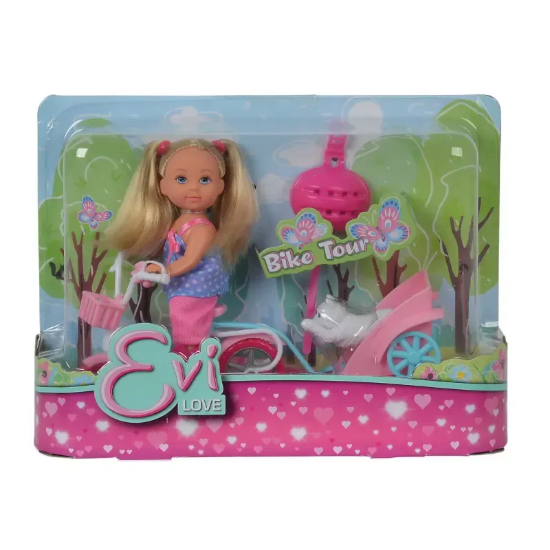 Papusica evi cu pantaloni cu animalut la plimbare cu bicicleta Papusica evi cu pantaloni cu animalut la plimbare cu bicicleta