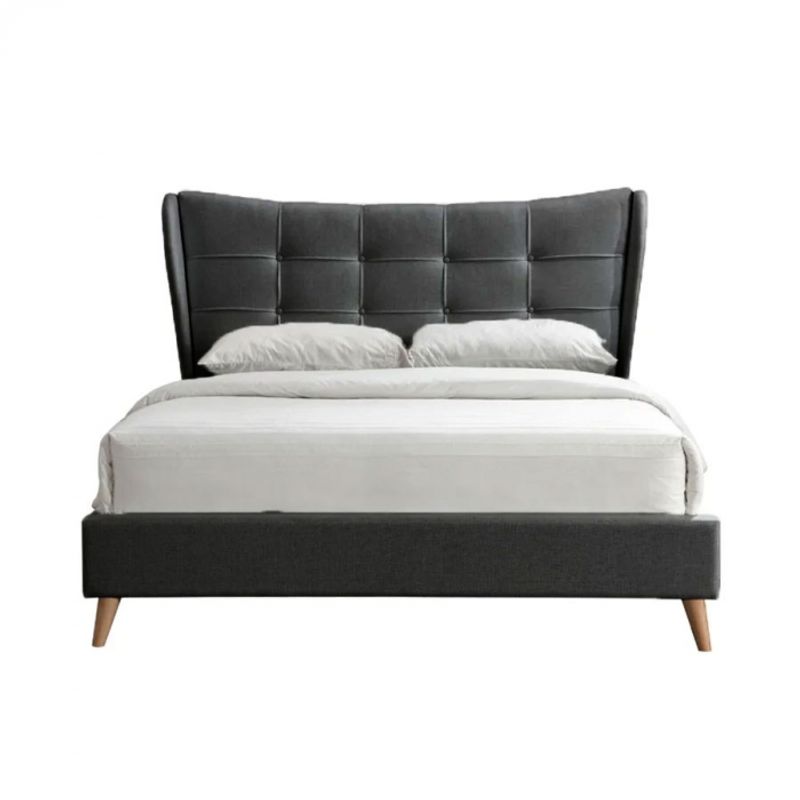 Pat Almera, 160 x 200 cm, tapitat catifea gri, somiera inclusa Pat Almera, 160 x 200 cm, tapitat catifea gri, somiera inclusa