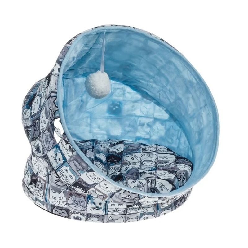 Pat Cuib pentru pisici, cu Figuri de Pisica, si Bila Suspendata, 40x40cm, gri/albastru Pat Cuib pentru pisici, cu Figuri de Pisica, si Bila Suspendata, 40x40cm, gri/albastru