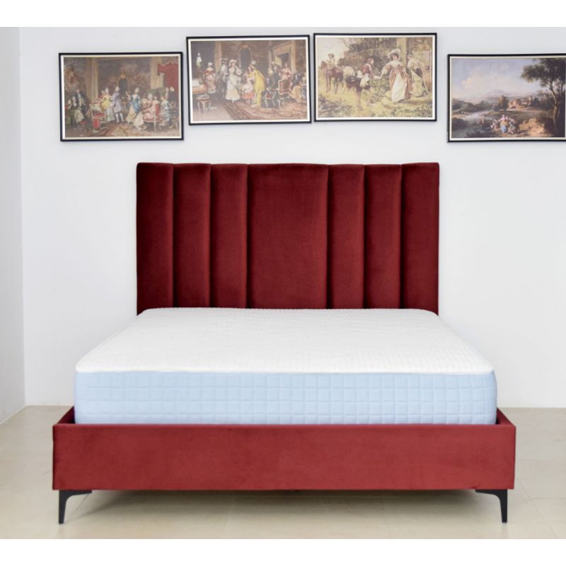 Pat Deja Vu, 180 x 200 cm, tapitat catifea, burgundiu, somiera inclusa Pat Deja Vu, 180 x 200 cm, tapitat catifea, burgundiu, somiera inclusa