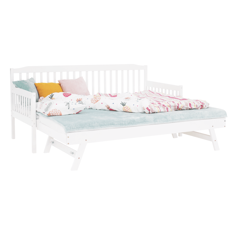 Pat extensibil pentru copii cu pat , alb, lemn masiv, PEDREZA Pat extensibil pentru copii cu pat , alb, lemn masiv, PEDREZA