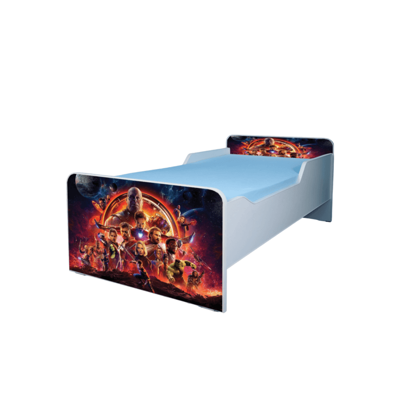 Pat pentru copii Avengers, 130x60 cm, alb/multicolor, saltea inclusa Pat pentru copii Avengers, 130x60 cm, alb/multicolor, saltea inclusa