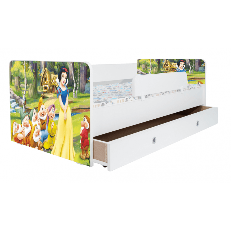 Pat pentru copii Kiddy Alba ca Zapada, 140x70 cm, cu sertar, alb/multicolor, saltea inclusa Pat pentru copii Kiddy Alba ca Zapada, 140x70 cm, cu sertar, alb/multicolor, saltea inclusa