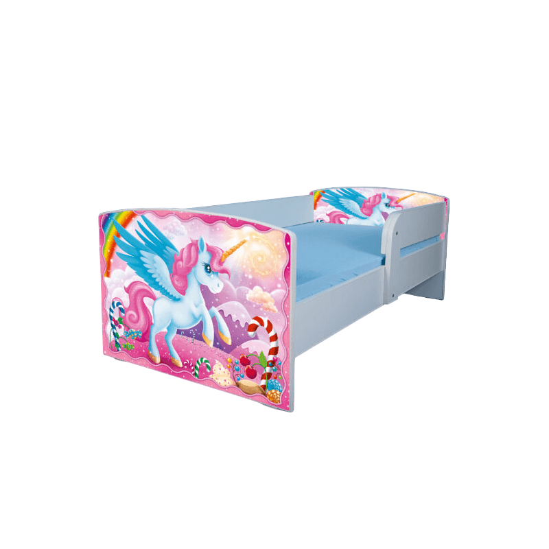 Pat pentru copii Micii Ponei, 130x60 cm, alb/multicolor, saltea inclusa Pat pentru copii Micii Ponei, 130x60 cm, alb/multicolor, saltea inclusa