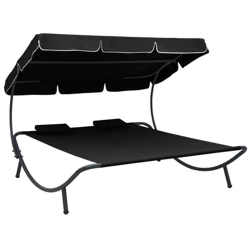 Pat sezlong de exterior cu baldachin si perne Pat sezlong de exterior cu baldachin si perne, negru
