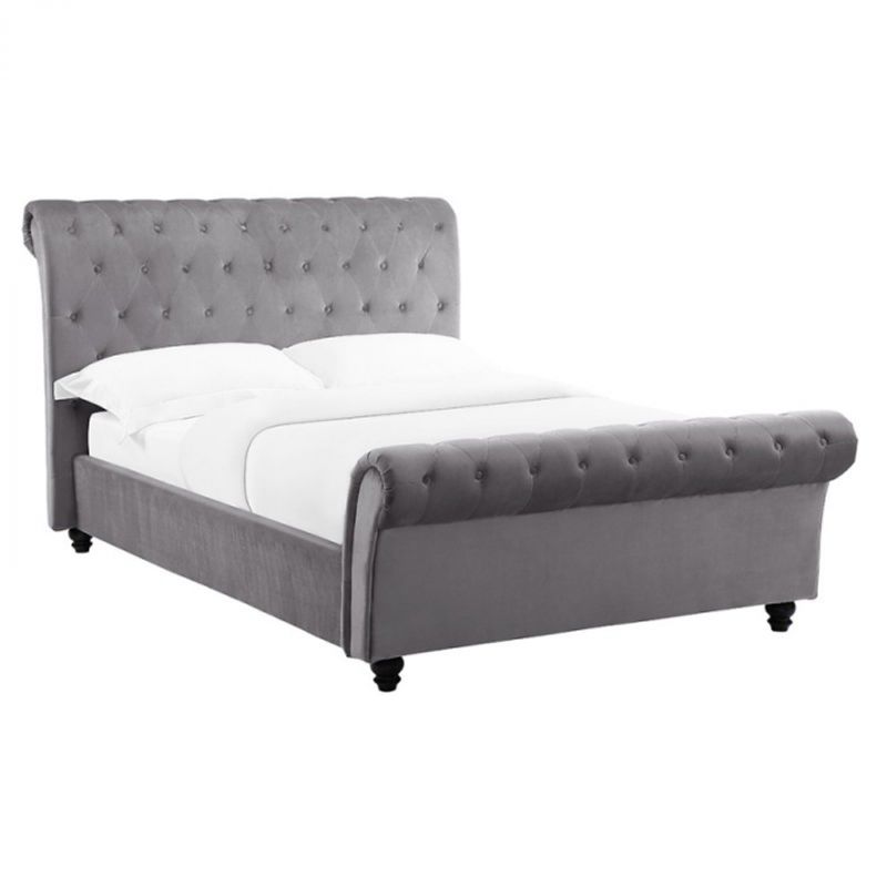 Pat Silver, 160 x 200 cm, tapitat catifea taupe, somiera inclusa Pat Silver, 160 x 200 cm, tapitat catifea taupe, somiera inclusa