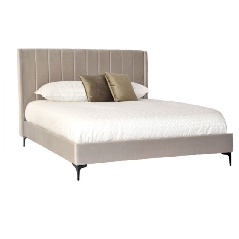 Pat Tossino, 180 x 200 cm, tapitat catifea bej, somiera inclusa Pat Tossino, 180 x 200 cm, tapitat catifea bej, somiera inclusa