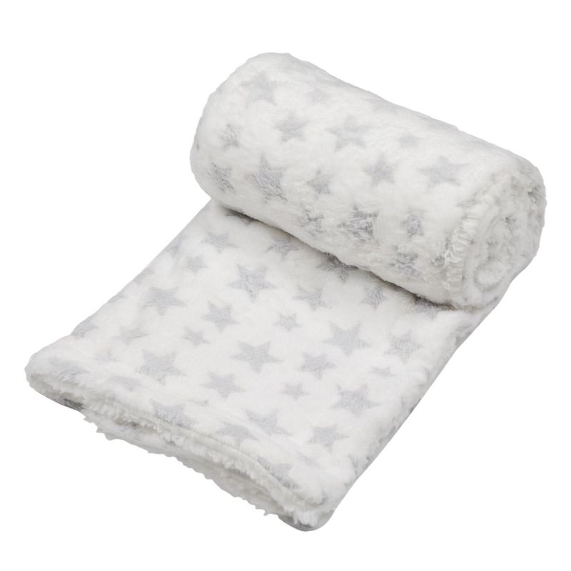Patura bebe, sherpa, stele gri, dimensiune 100x 75cm Patura bebe, sherpa, stele gri, dimensiune 100x 75cm