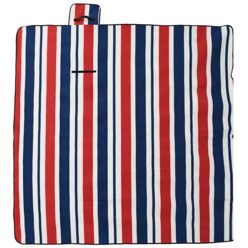 Patura picnic pliabila, dungi rosu albastre, 200x200 cm catifea Patura picnic pliabila, dungi rosu albastre, 200x200 cm catifea