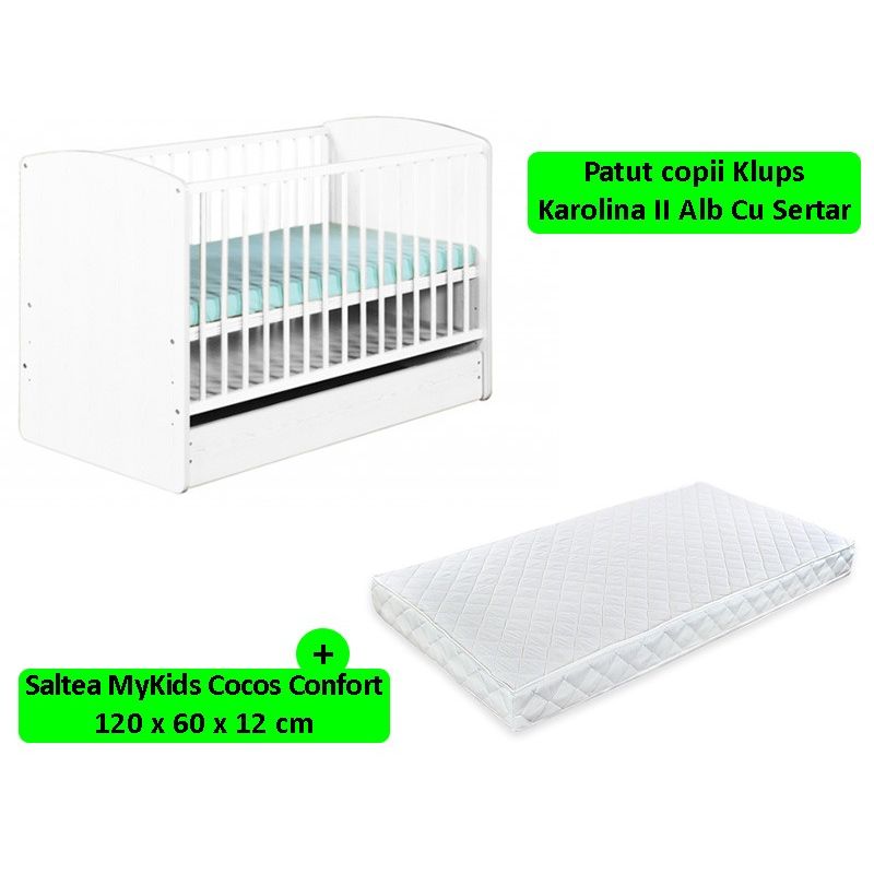 Patut Cu Sertar KLUPS Karolina II Alb Cu Saltea 12 MyKids
