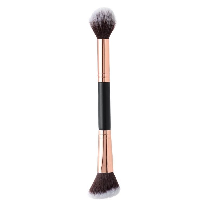 Pensula machiaj, model 2505d, cu doua capete oval si oblic, negru roz auriu, 20 cm Pensula machiaj, model 2505d, cu doua capete oval si oblic, negru roz auriu, 20 cm