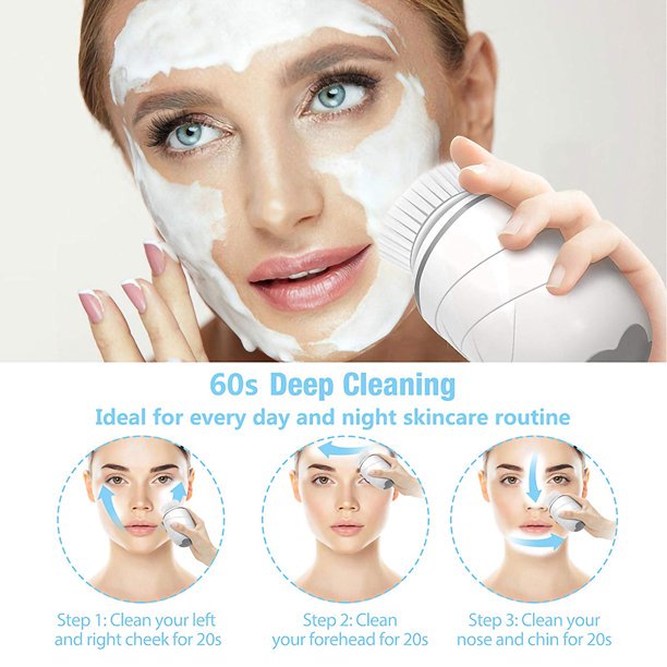 Perie de curatare faciala Trendmark®, 3 in 1, cu 3 capete, 2 viteze, reincarcabila, rezistenta la apa, culoare alb Perie de curatare faciala Trendmark®, 3 in 1, cu 3 capete, 2 viteze, reincarcabila, rezistenta la apa, culoare alb