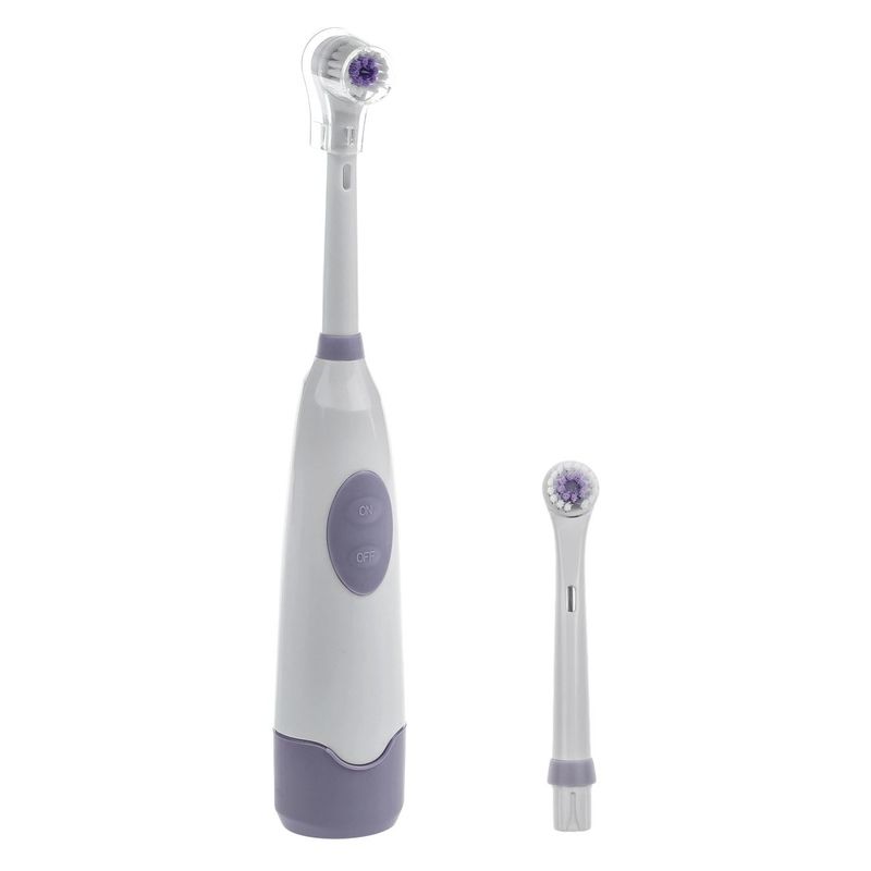 Perie de dinti electrica, model alb/lila, rezerva inclusa, oscilatie 6000 miscari/minut, functioneaza cu 2 baterii aa Perie de dinti electrica, model alb/lila, rezerva inclusa, oscilatie 6000 miscari/minut, functioneaza cu 2 baterii aa