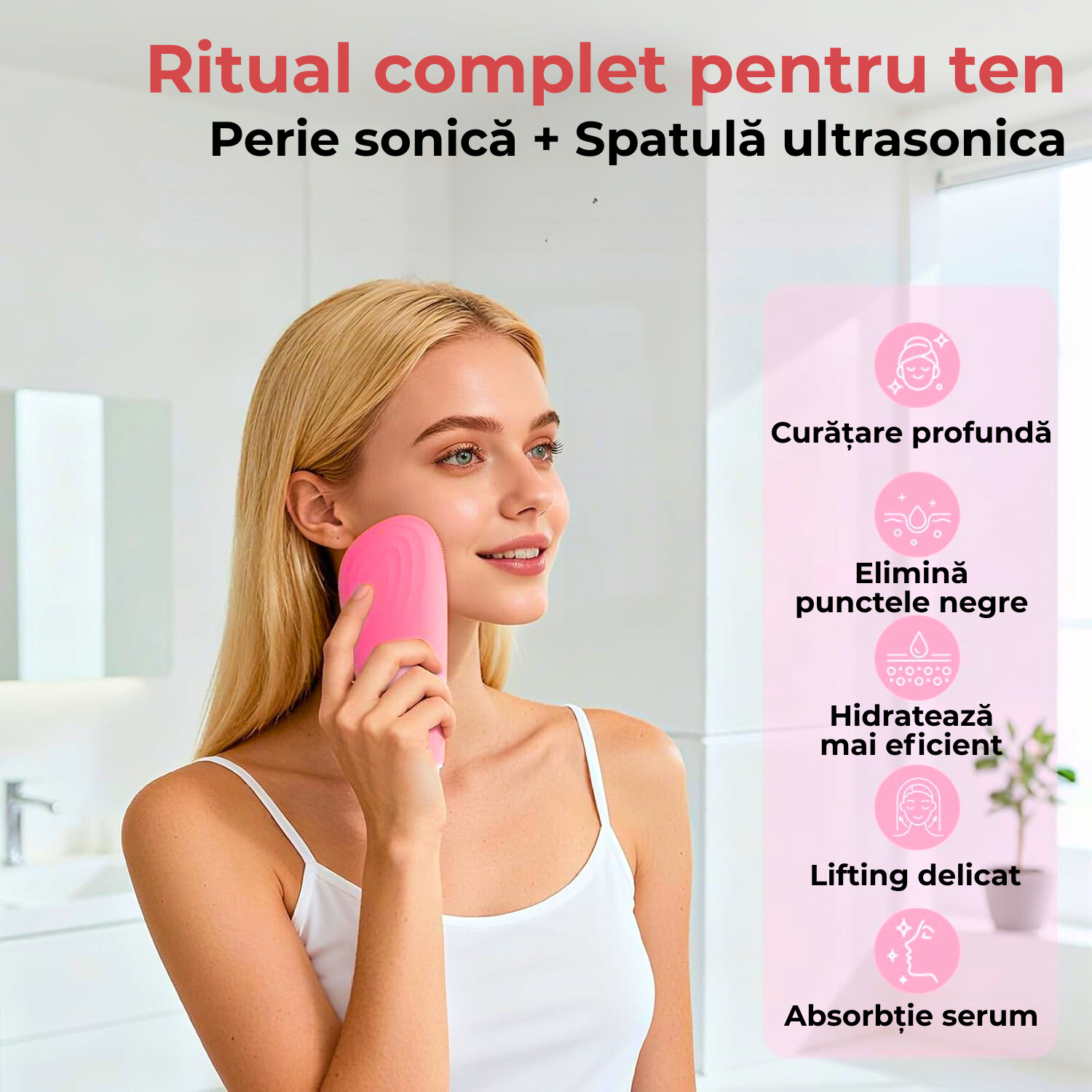 Perie Electrica Faciala 2 in 1 JustNet® cu Spatula Ultrasonica – Curatare Profunda, Exfoliere Delicata si Ingrijire Premium