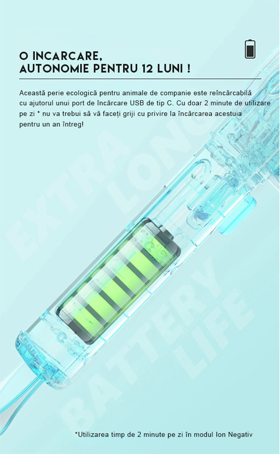 Ionii negativi neutralizeaza ionii pozitivi din par, facand blana animalului dumneavoastra stralucitoare, neteda, fara efect de electrizare si sanatoasa.