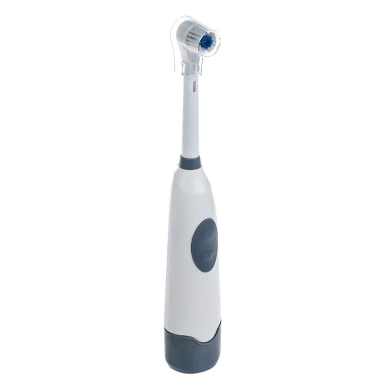 Periuta de dinti electrica, model cu rezerva, alb cu detalii bleu, rotativa 6000 rpm, cu baterii aa Periuta de dinti electrica, model cu rezerva, alb cu detalii bleu, rotativa 6000 rpm, cu baterii aa