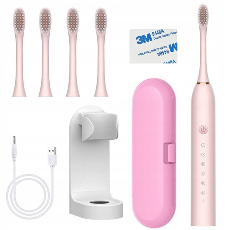 Periuta de dinti electrica reincarcabila sonica, 42.000 miscari/minut, 6 moduri smart de curatare cu temporizator, 4 cap Periuta de dinti electrica reincarcabila sonica, 42.000 miscari/minut, 6 moduri smart de curatare cu temporizator, 4 cap