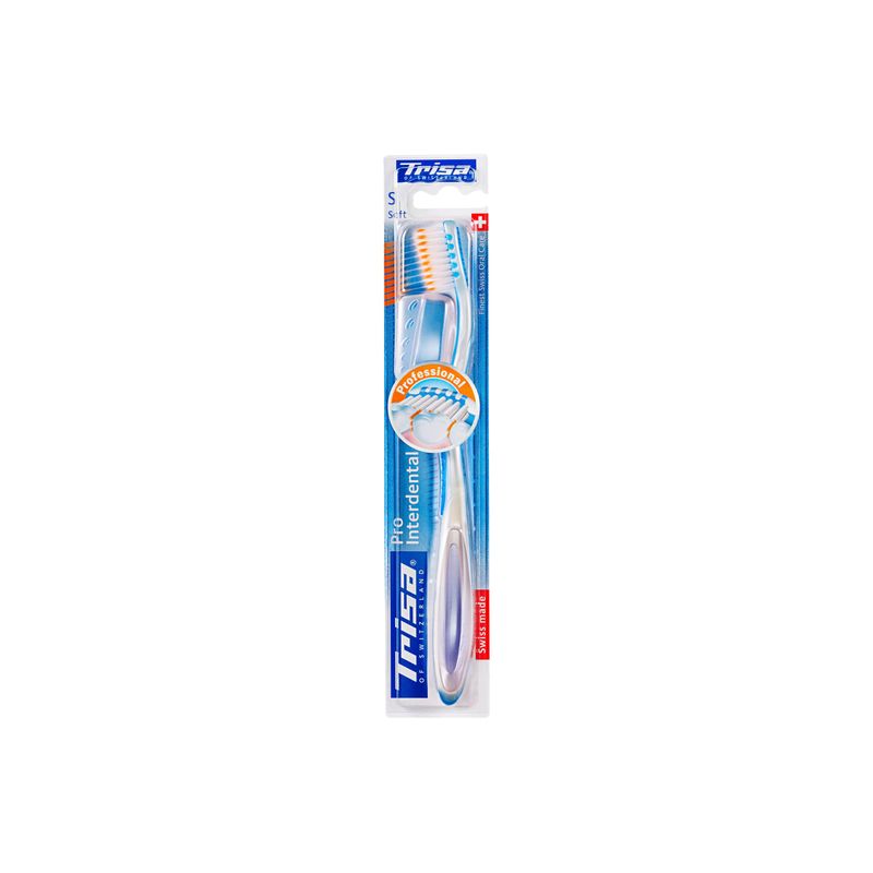 Periuta de dinti manuala Pro Interdental Soft Trisa 664324, Periuta de dinti manuala, profesionala, patent Trisa. Modelul revolutionar, creat de Trisa Elvetia, modifica radical perceptia tuturor asupra periajului: acesta devine placut, cu adevarat eficient, iar orice alta periuta utilizata ulterior este perceputa ca fiind mult inferioara.Proprietati:Sistemul inovator de filamente etajate permite curatarea concomitenta a spatiului interdentar (filamente lungi, foarte subtiri) si a suprafetelor plane ale dintelui (fire scurte).Capatul abraziv de cauciuc din spatele capului de perie ajuta la indepartarea bacteriilor de pe limba si din interiorul obrajilor. Elementele din cauciuc inconjoara capul de periaj oferind o curatare sigura.Este considerata de cei mai multi specialisti in domeniu ca fiind cea mai eficienta periuta manuala proiectata vreodata.Este prevazuta cu doua tipuri de peri, lungi si scurti pentru un periaj complet, curatare profesionala si in profunzime. Capac igienic inclus.Manerul ergonomic este confectionat din plastic si extrem de comod. Este un maner usor si rezistent la apa.Periuta are un design elegant, modern si luxos datorita formei si culorilor bine conturate. Avand un design ergonomic desavarsit, periuta se adapteaza perfect in mana, periajul devinind mult mai comod.Pentru sigla Trisa s-a folosit vopsea ecologica.Liniile sale au fost special concepute intr-o forma super-ergonomica pentru a se potrivi perfect cu conturul palmei oferind astfel un control excelent asupra periei datorita manerului.Ofera o curatare profesionala si eficienta. Firele mai lungi, ultrafine curata profund in spatiile interdentare iar firele mai scurte si rotunjite indeparteaza placa bacteriana de pe suprafata dintiilor si eventualele colorari.