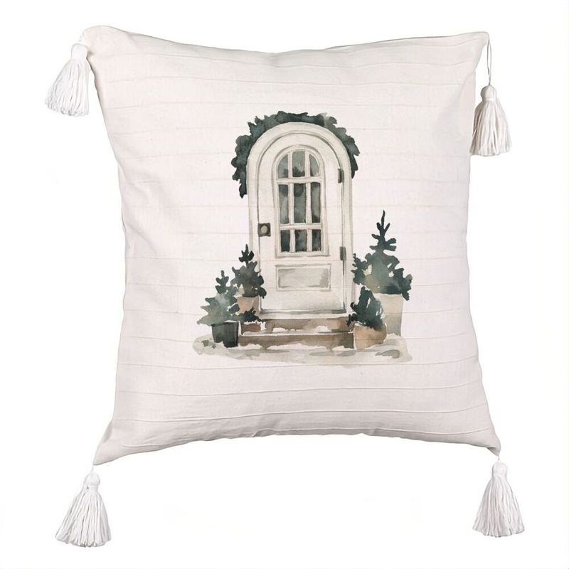 Perna Decorativa cu Franjuri cu tematica de Craciun, 8, 45x45 cm, Ecru, Cu fermoar Perna Decorativa cu Franjuri cu tematica de Craciun, 8, 45x45 cm, Ecru, Cu fermoar