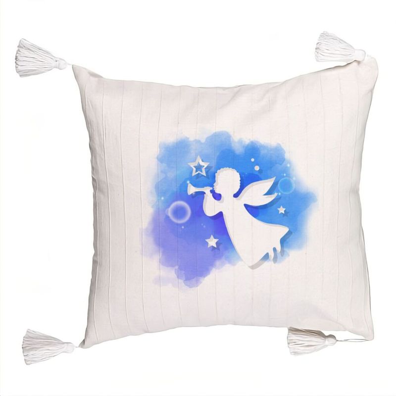 Perna Decorativa cu Franjuri cu tematica de Craciun, Inger, 45x45 cm, Ecru, Cu fermoar Perna Decorativa cu Franjuri cu tematica de Craciun, Inger, 45x45 cm, Ecru, Cu fermoar