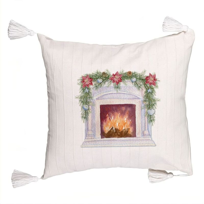 Perna Decorativa cu Franjuri cu tematica de Craciun, Semineu, 45x45 cm, Ecru, Cu fermoar Perna Decorativa cu Franjuri cu tematica de Craciun, Semineu, 45x45 cm, Ecru, Cu fermoar