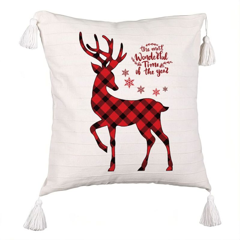 Perna Decorativa cu Franjuri de Craciun cu Ren si Text 2, 45x45 cm, Ecru, Cu fermoar Perna Decorativa cu Franjuri de Craciun cu Ren si Text 2, 45x45 cm, Ecru, Cu fermoar