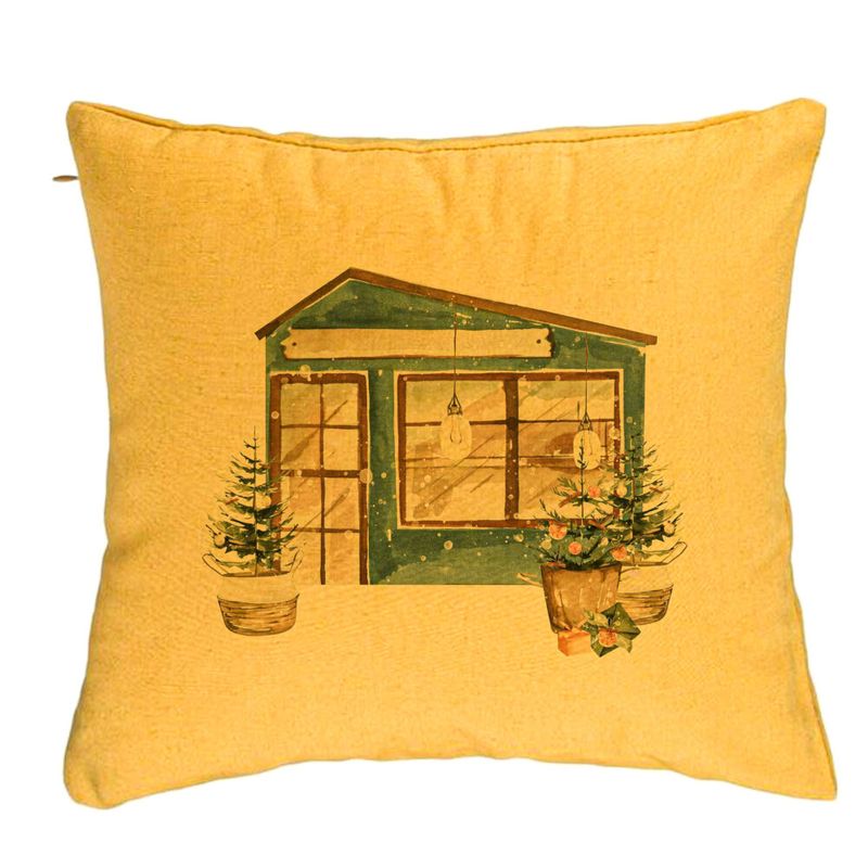 Perna Decorativa cu tematica de Craciun, 2, 40x40 cm, Galben, Husa Detasabila, Burduf Perna Decorativa cu tematica de Craciun, 2, 40x40 cm, Galben, Husa Detasabila, Burduf