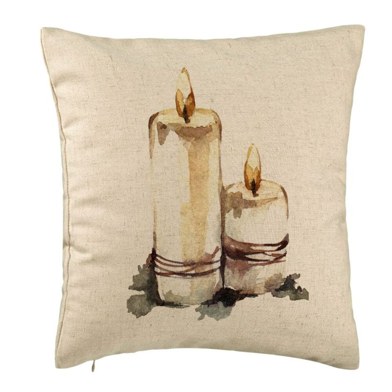 Perna Decorativa cu tematica de Craciun, Lumanari 1, 40x40 cm, Bej, Husa Detasabila, Burduf Perna Decorativa cu tematica de Craciun, Lumanari 1, 40x40 cm, Bej, Husa Detasabila, Burduf