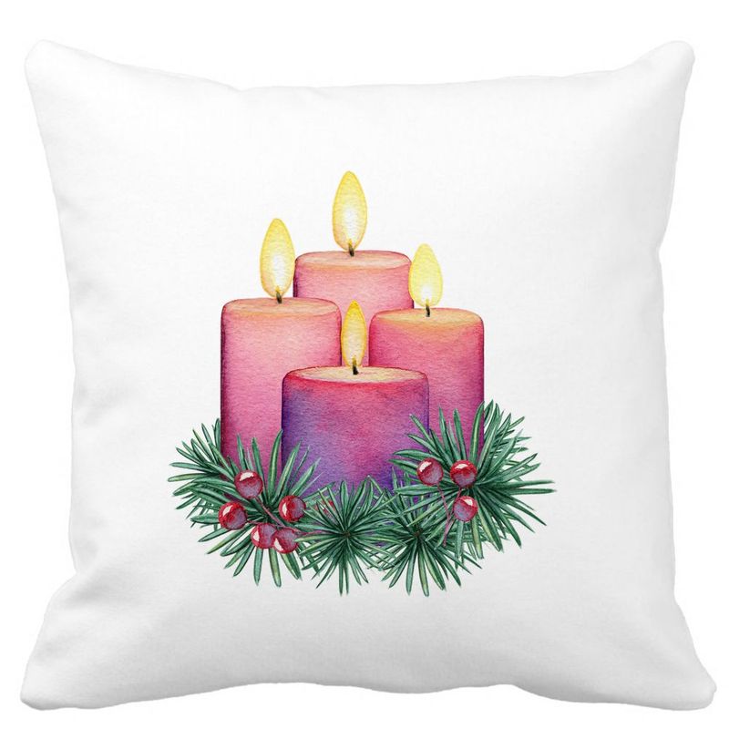 Perna Decorativa cu tematica de Craciun, Lumanari 5, 40x40 cm, Alba, Mata, Husa Detasabila, Burduf
