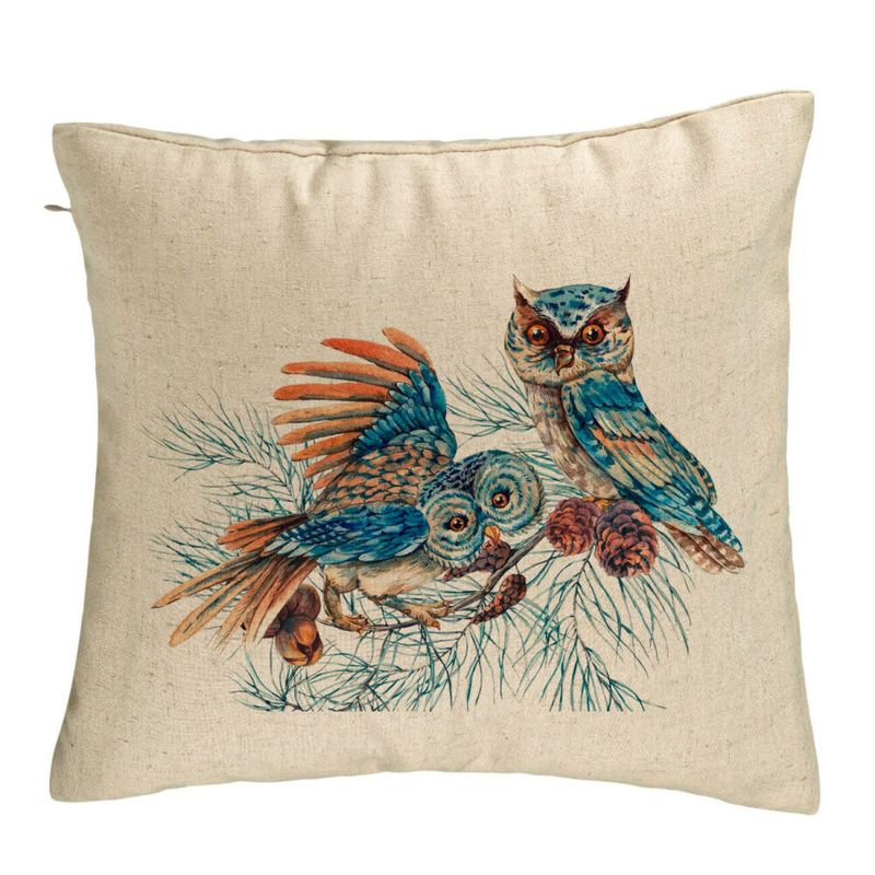 Perna Decorativa de Craciun Bufnita Colorfull, 40x40 cm, Bej, Husa Detasabila, Burduf Perna Decorativa de Craciun Bufnita Colorfull, 40x40 cm, Bej, Husa Detasabila, Burduf