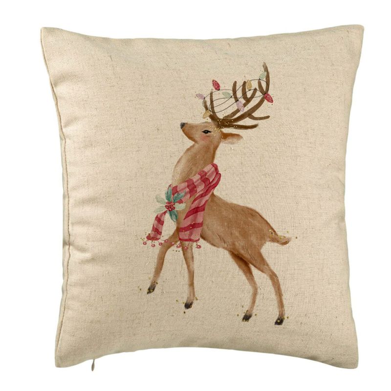 Perna Decorativa de Craciun cu Ren, 2, 40x40 cm, Bej, Husa Detasabila, Burduf Perna Decorativa de Craciun cu Ren, 2, 40x40 cm, Bej, Husa Detasabila, Burduf