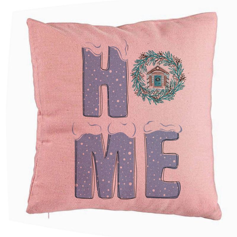 Perna Decorativa de Craciun, HOME, 40x40 cm, Roz, Husa Detasabila, Burduf Perna Decorativa de Craciun, HOME, 40x40 cm, Roz, Husa Detasabila, Burduf