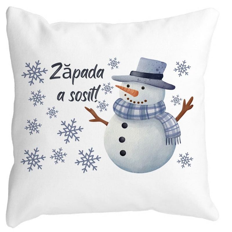 Perna Decorativa de Craciun Om de Zapada si Text 2, 40x40 cm, Alba, Mata, Husa Detasabila, Burduf
