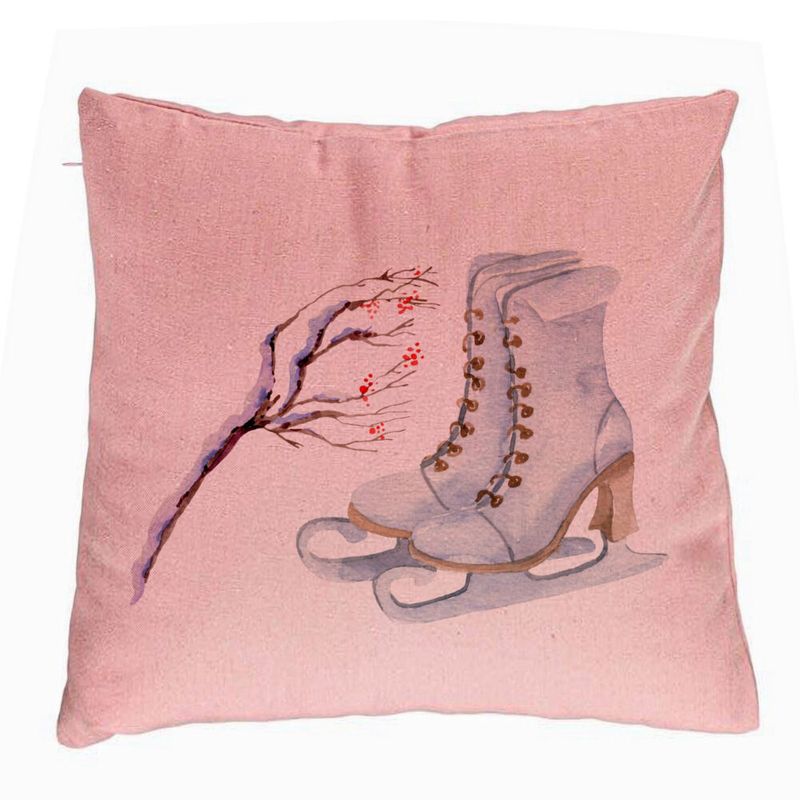 Perna Decorativa de Craciun, Patine gheata, 1, 40x40 cm, Roz, Husa Detasabila, Burduf Perna Decorativa de Craciun, Patine gheata, 1, 40x40 cm, Roz, Husa Detasabila, Burduf