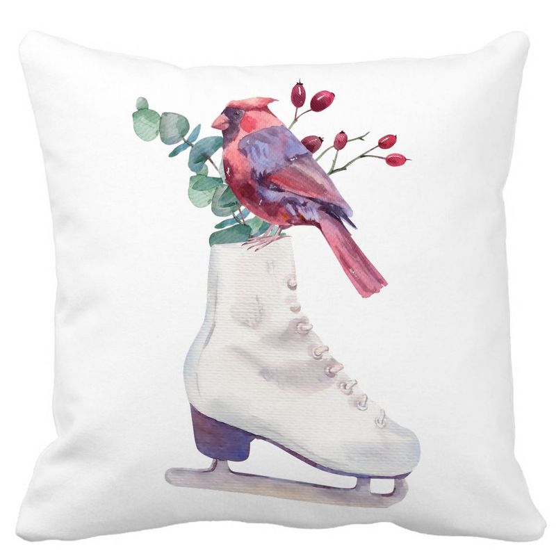 Perna Decorativa de Craciun, Patine gheata si Pasare Color, 40x40 cm, Alb mat, Husa Detasabila, Burduf Perna Decorativa de Craciun, Patine gheata si Pasare Color, 40x40 cm, Alb mat, Husa Detasabila, Burduf