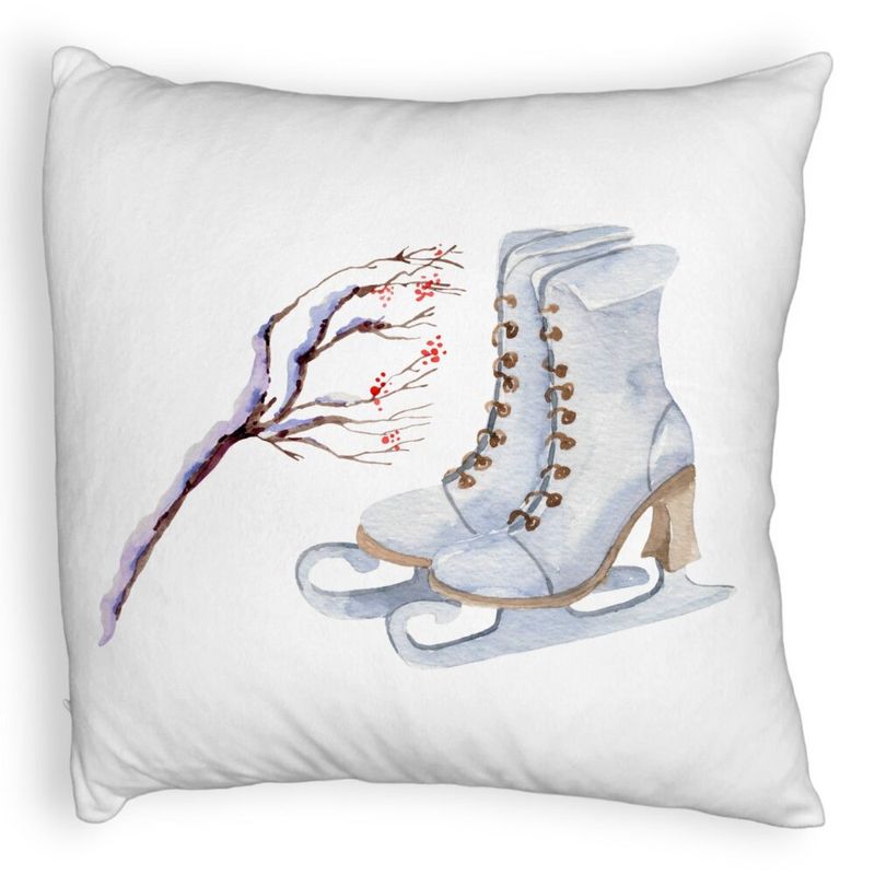Perna Decorativa Fluffy de Craciun, Patine gheata, 1, 40x40 cm, Alb, Husa Detasabila, Burduf Perna Decorativa Fluffy de Craciun, Patine gheata, 1, 40x40 cm, Alb, Husa Detasabila, Burduf
