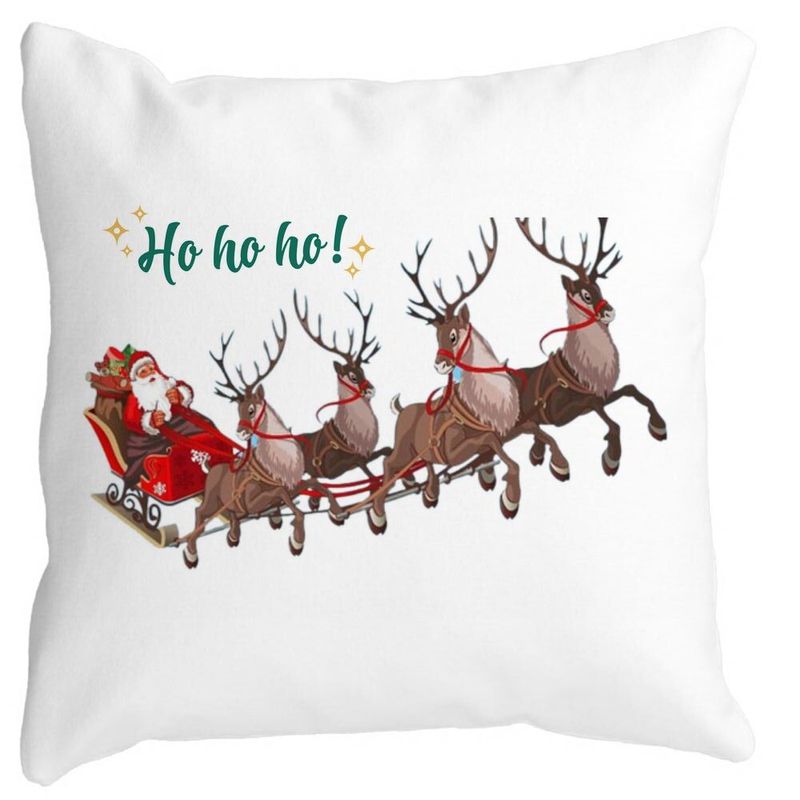Perna Decorativa Mos Craciun si sania sa cu Reni, 40x40 cm, Alb mat, Husa Detasabila, Burduf Perna Decorativa Mos Craciun si sania sa cu Reni, 40x40 cm, Alb mat, Husa Detasabila, Burduf