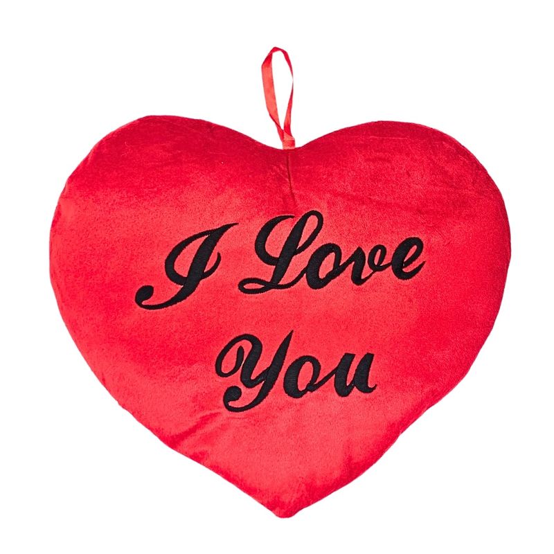 Perna inima rosie, din plus, cu mesajul I Love You, 35 cm Perna inima rosie, din plus, cu mesajul I Love You, 35 cm