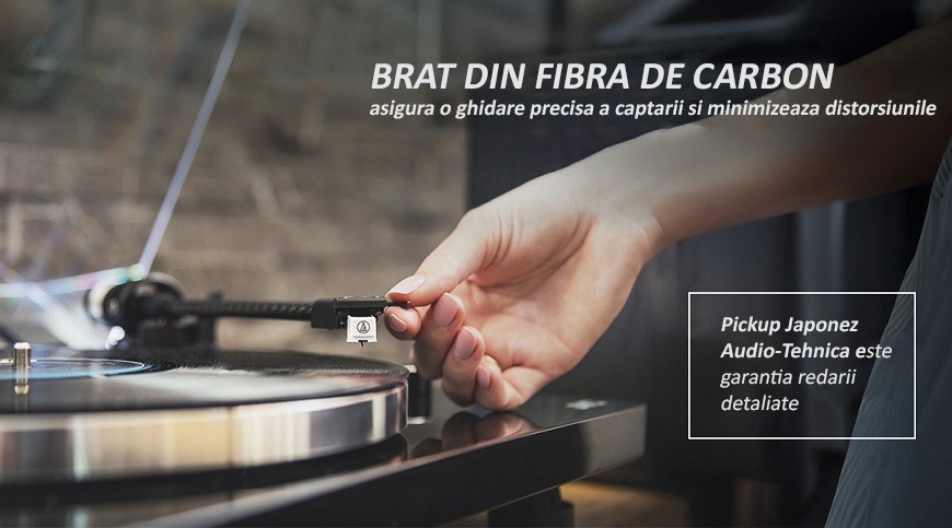 JVC AL-E534B se remarca prin bratul din fibra de carbon, rezistent, usor si care conduce precis pick-up-ul, minimizand distorsiunea si oferind un sunet clar. Calitatea redarii este asigurata de doza cu ac japoneza Audio-Technica AT3600L care ofera un sunet detaliat si dinamic. Stabilitatea rotatiilor si eliminarea vibratiilor sunt asigurate de sistemul de antrenare cu curea, foarte fiabil.