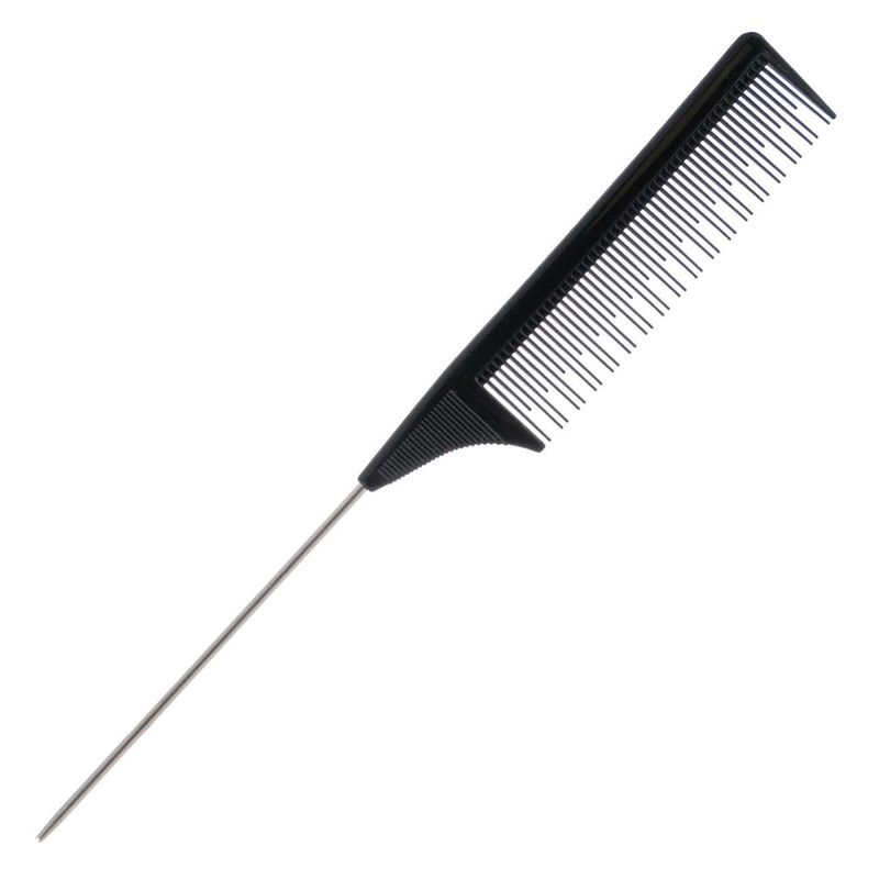 Pieptene coafor, negru, 23cm, dentitie neuniforma, varf metalic pentru separarea suvitelor Pieptene coafor, negru, 23cm, dentitie neuniforma, varf metalic pentru separarea suvitelor