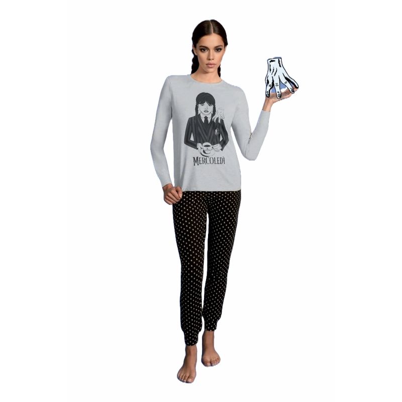 Pijama bumbac dama Wednesdey Gri/Negru Pijama bumbac dama Wednesdey S INTL Gri/Negru