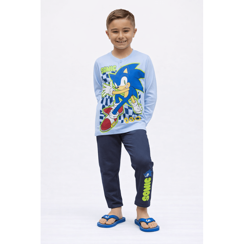 Pijamale copii Sonic SC40G4700, set 2 piese din bumbac Pijamale copii Sonic SC40G4700, set 2 piese din bumbac 98-104 CM 3-4 ani Albastru deschis