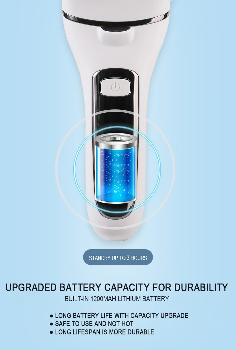 Cu o baterie litiu de mare capacitate incorporata de 1200mAh, acest aparat pentru indepartarea calusurilor poate oferi o autonomie de lucru de 60-90 de minute, cu doar 2-3 ore de incarcare completa.
