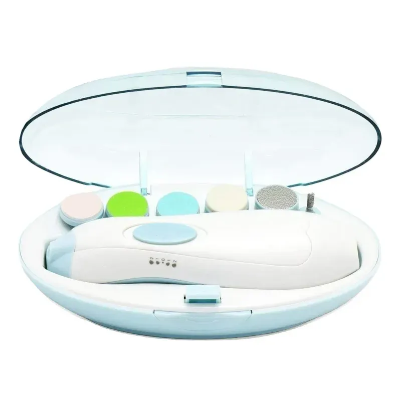Unghierele nu netezesc marginile unghiilor, astfel ca pot aparea unghii incarnate sau pot ramane unghiile ascutite iar bebelusul se poate zgaria. Pila electrica unghii pentru nou-nascuti si bebelusi, copii sau adulti permite ajustarea si netezirea unghiilor intr-un mod sigur si delicat. Motor silentios : il puteti folosi in timp ce copilul dvs. doarme Iluminare LED - il puteti folosi si noaptea sau in conditii de lumina redusa Ergonomic, du design compact. Setul include 6 pile delicate pentru ajustarea eficienta a unghiilor moi ale nou-nascutilor, unghiile bebelusilor, copiilor dar si ale adultilor. Cele 6 pile sunt potrivite fiecarei varste, toti membrii familiei bucurandu-se de utilitate dispozitivului; Viteza reglabila: 4 viteze disponibile. Pachetul contine: 1x Dispozitiv electric pentru pilire si curatare a unghiilor; 6x capete – 4 pentru bebelusi, 1 pentru adulti si 1 pentru toate varstele; Cutie de prezentare