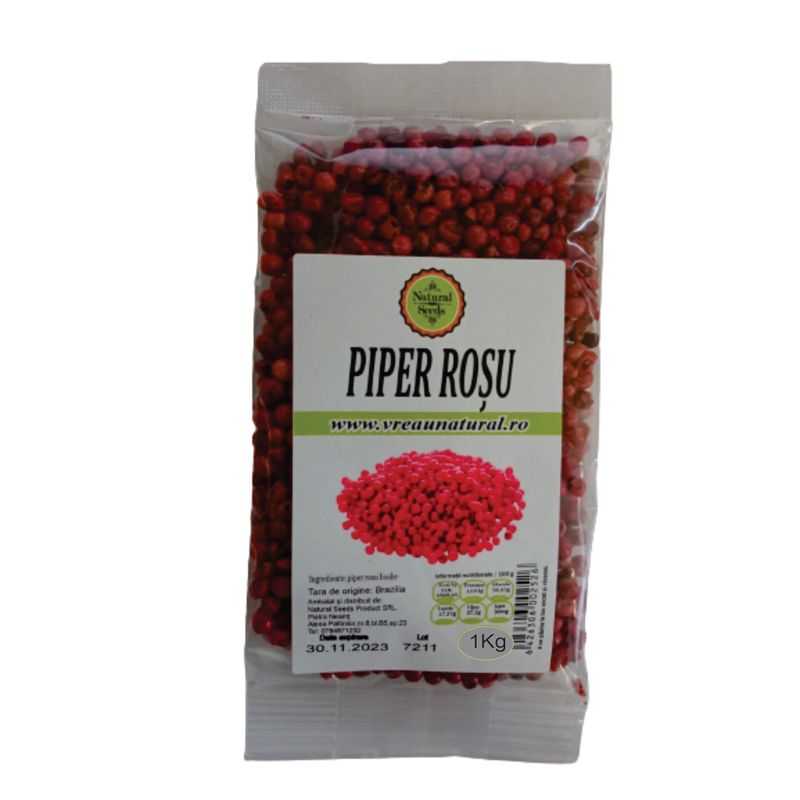 Piperul roz reprezinta fructele uscate ale unei specii diferite din familia Piperaceae – Schinus Terebinthifolius. Acest condiment este mai degraba aromat decat iute, fiind de multe ori ales ca decoratiune si mai putin pentru gust. Totusi, in combinatie cu alte mirodenii poate capata o aroma subtila, deosebita, fiind, in general, preferat pe langa preparate din peste si legume.