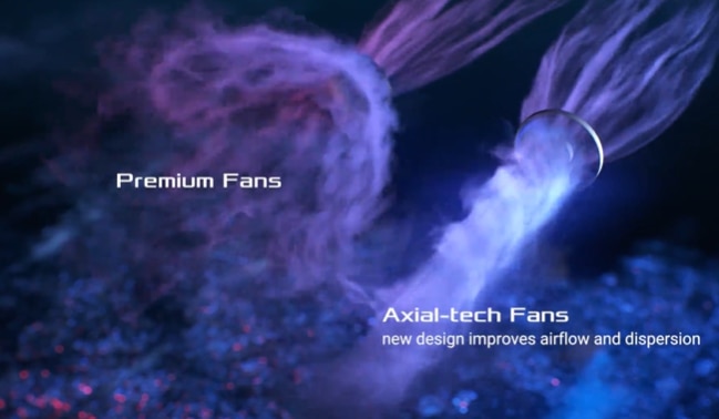 Design cu 2 sloturi O carcasa, un radiator si o dispunere a conductelor de caldura proiectate cu atentie permit celor doua ventilatoare Axial-tech sa utilizeze ventilatia panoului lateral al sasiului, oferind performante termice care depasesc dimensiunile compacte. |
