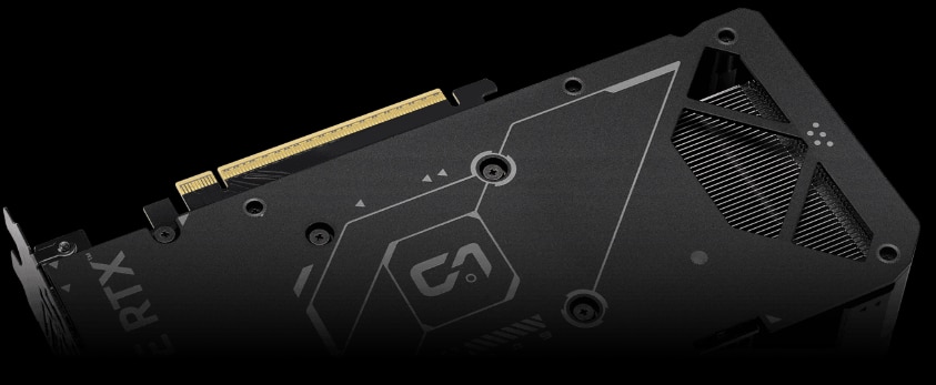 Placa posterioara ventilata O placa posterioara ventilata imbunatateste semnificativ disiparea caldurii, contribuind la mentinerea temperaturii GPU-ului la un nivel mai scazut in timpul sarcinilor intense. Acest flux de aer suplimentar ajuta la asigurarea unor temperaturi optime, sporind performanta, longevitatea si stabilitatea prin protejarea impotriva supraincalzirii si a limitarii termice. |